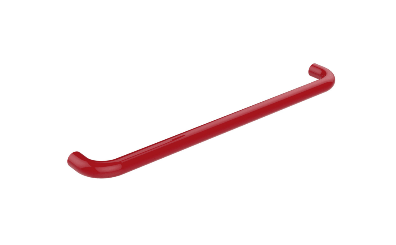 an den Enden im rechten Winkel abgebogene Stange ohne Befestigungsrosette, inklusive korrosionsfreiem HEWI Befestigungsmaterial, 570 mm breit (Achsmaß), 80 mm tief und 28 mm im Durchmesser, aus hochwertigem Polyamid nach HEWI Farbtabelle, inklusive korrosionsfreiem HEWI Befestigungsmaterial.