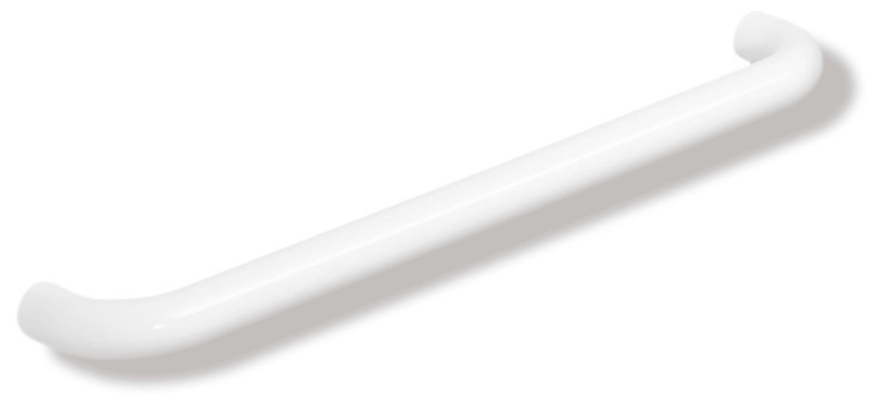 An den Enden im rechten Winkel abgebogene Stange ohne Befestigungsrosetten, inklusive Befestigungsmaterial, 457 mm breit (Achsmaß), 80 mm tief und 28 mm im Durchmesser, aus hochwertigem Polyamid nach