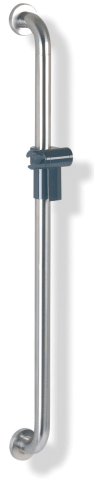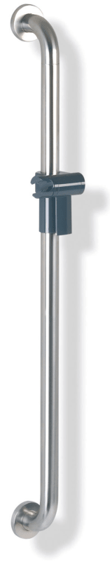 an den Enden im rechten Winkel abgebogene senkrechte Stange mit Befestigungsrosetten und Brausehalter, Achsmaß 900 mm, 90 mm tief, Stangendurchmesser 33 mm, Rosettendurchmesser 70 mm, aus hochwertigem Edelstahl, Oberfläche matt geschliffen, inkl. korrosionsfreiem HEWI Befestigungsmaterial.