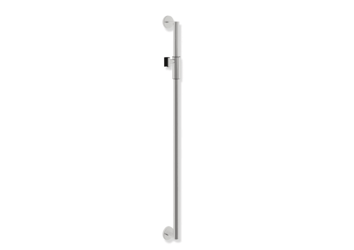 HEWI Brausehalterstange, System 900senkrechte Stange mit zur Wand ausgeführten Stützen, Befestigungsrosetten und Brausehalter, Achsmaß 1100 mm, 88 mm tief, Stangendurchmesser 32 mm, Rohrstärke 2 mm, R