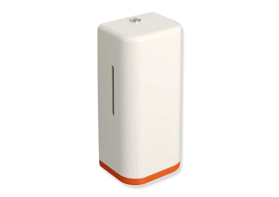 Korpus aus hochglänzendem Polyamid in der HEWI Farbe 99 (Reinweiß), Rahmenelement / Entnahmeöffnung aus hochwertigem, mattem Polyamid, Füllmenge 500 ml, Breite 134 mm, Höhe 278 mm, Tiefe 106 mm, CE-Ke
