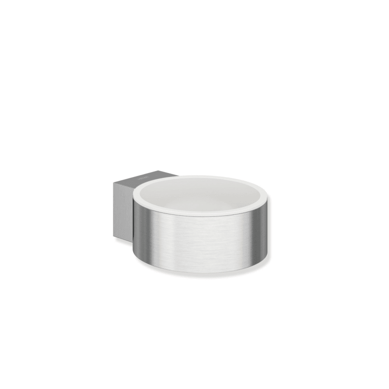 Halter aus hochwertigem Edelstahl, matt geschliffen, Einsatz aus hochwertigem Kunststoff in den HEWI Farben 92 (Anthrazitgrau) und 98 (Signalweiß), innen 78 mm breit, 37 mm hoch, 104 mm tief, inklusive korrosionsfreiem HEWI Befestigungsmaterial.