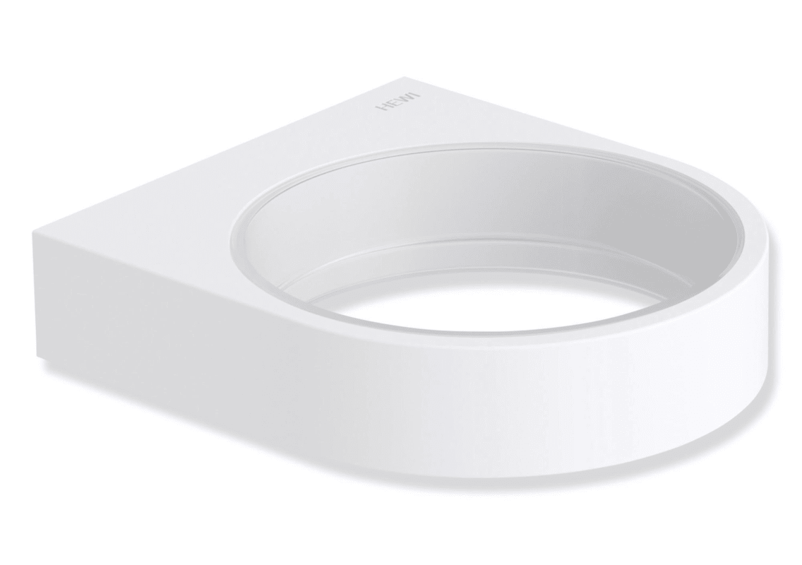 Metall, pulverbeschichtet in der HEWI Farbe DC (Schwarz tiefmatt) oder in der HEWI Farbe DX (Weiß tiefmatt), für Becher 800.04.01001 und Becher 800.04.01005 sowie Seifenspender 800.06.0104...