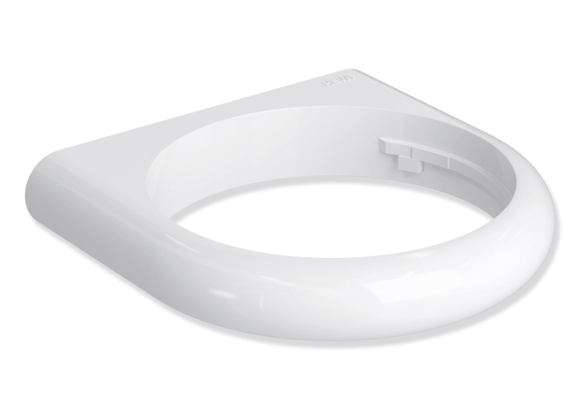 Halter für den großen Seifenablage-Einsatz und den Ablagekorb-Einsatz, 141 mm breit, 25 mm hoch und 140 mm tief, Einsatz-Öffnung 115 mm im Durchmesser, aus hochwertigem Polyamid nach HEWI Farbtabelle, inklusive korrosionsfreiem HEWI Befestigungsmaterial.