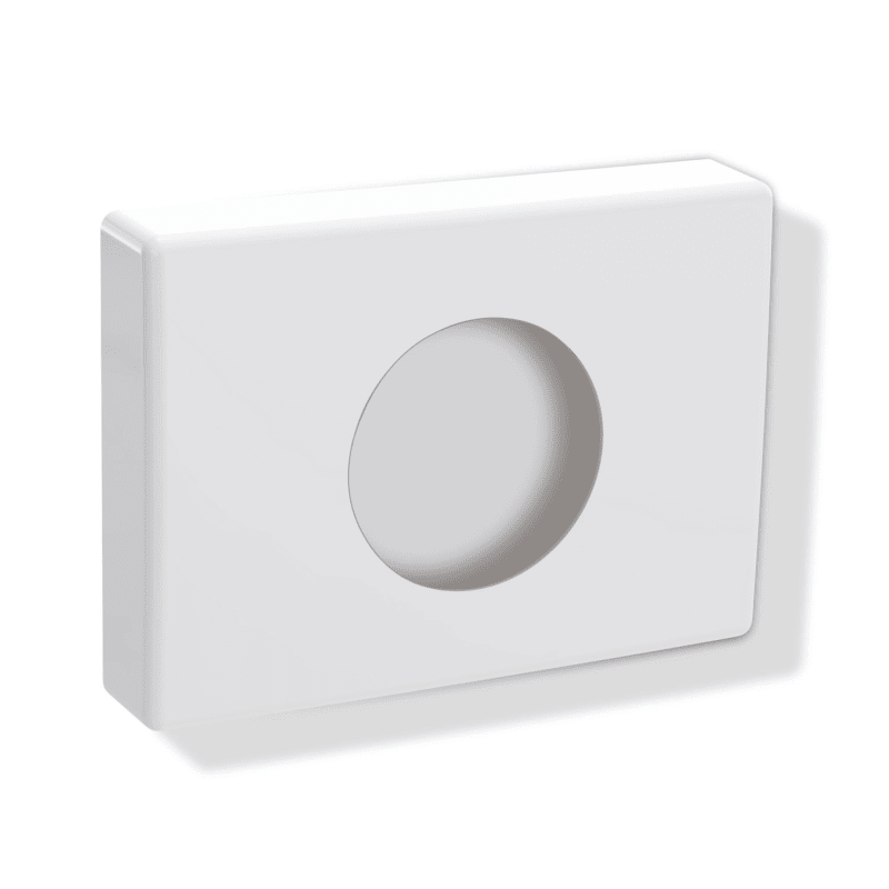 143 mm breit, 103 mm hoch und 27 mm tief, aus hochwertigem Polyamid, inklusive korrosionsfreiem HEWI Befestigungsmaterial.