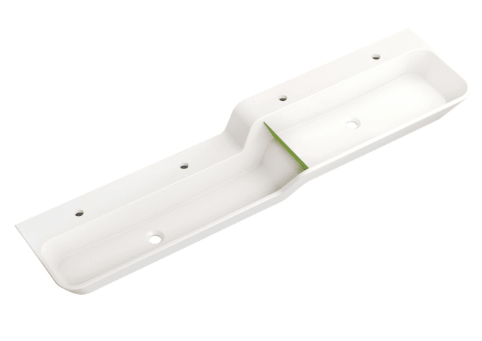 HEWI Reihenwaschtisch mit HöhenabstufungMineralguss, alpinweiß, 2 miteinander verbundene rechteckige Becken mit großen Radien, oberes Becken links, das untere Becken hat eine geringere Tiefe, inkl. tr