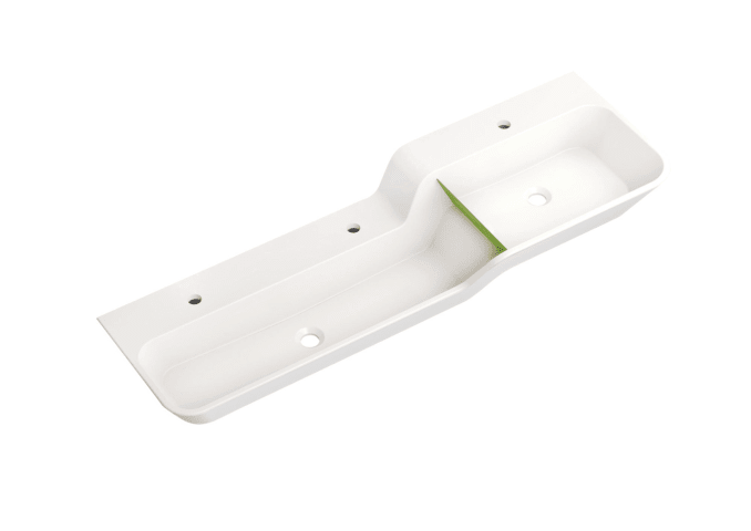 HEWI Reihenwaschtisch mit HöhenabstufungMineralguss, alpinweiß, 2 miteinander verbundene rechteckige Becken mit großen Radien, oberes Becken links, das untere Becken hat eine geringere Tiefe, inkl. tr