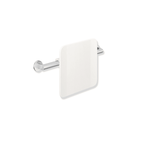 Rückenlehne mit beidseitig angebrachten Befestigungsstangen mit Rosetten, 330 mm hoch und 150 mm tief, Lehne 350 mm breit, Stangendurchmesser 32 mm, Rohrstärke 2 mm, Achsmaß von 478 bis 578 mm bauseits verstellbar, Lehne aus Kunststoff in den HEWI Farben 98 (Signalweiß) und 92 (Anthrazitgrau), Anbindung aus hochwertigem Edelstahl, Oberfläche verchromt, inklusive korrosionsfreiem Befestigungsmaterial, erfüllt die Anforderungen nach Britisch-Standard BS 8300:2009+A1:2010/Doc M.