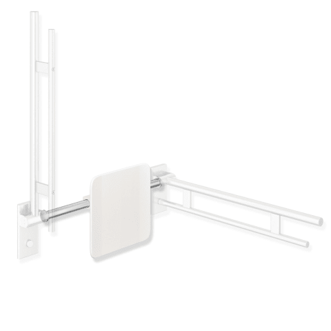 HEWI Rückenstütze, System 900Rückenlehne mit beidseitig angebrachten Befestigungsstangen, Montage an Stützklappgriffen, Design (A) des Systems 900, 330 mm hoch und 150 mm tief, Lehne 350 mm breit, Sta