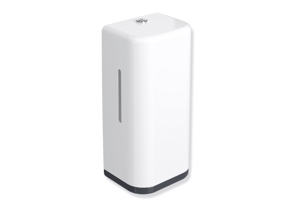 Der elektronische HEWI SENSORIC Seifenspender der Serie 477, mit Korpus in der HEWI-Farbe 98 (Signalweiß), ist ein Behälter (500 ml), der dazu dient, Flüssigseife oder Seifengel dosiert ausz