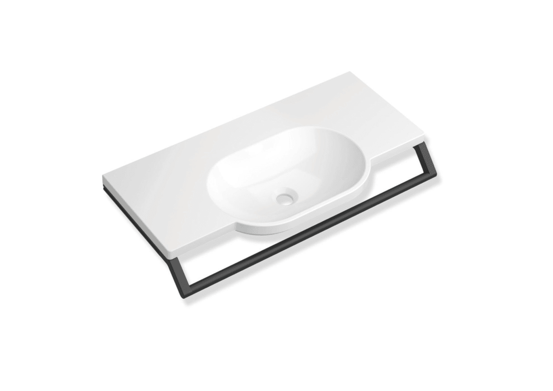 HEWI Produktset Waschtisch mit Haltegriff incl. Waschtischprofilen mit Haltegriff 950.13.0025Waschtisch aus Mineralguss, alpinweiß, mit Ablagefläche und ovalem Becken, Breite 850 mm, Tiefe 415 mm, Was