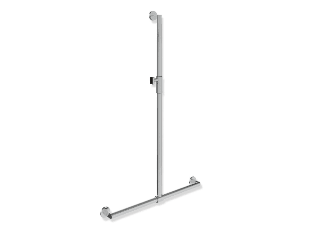 HEWI System 900 Duschhandläufe mit verschiebbaren Brausehalterstangen und mit Magnetbrausehaltern (senkrechte Länge 1250 mm / waagerechte Länge 765 mm / Ø32 mm) dienen als Halte- und Stützgriff, um ein sicheres Stehen und Bewegen in der Dusche zu ermöglichen. Sie erleichtern den Ein- und Ausstieg aus der Dusche und bieten Halt beim Duschen, insbesondere für Personen mit eingeschränkter Mobilität oder Gleichgewichtsproblemen.