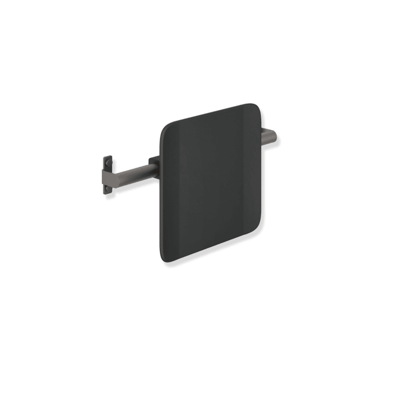 Wandanbindung aus hochwertigem Edelstahl, pulverbeschichtet in der HEWI Farbe CV (Schwarz tiefmatt) und ER (Dunkelgrau Perlglimmer tiefmatt) mit schwarzer Lehne oder pulverbeschichtet in der HEWI Farbe AS (Weiß tiefmatt) mit weißer Lehne