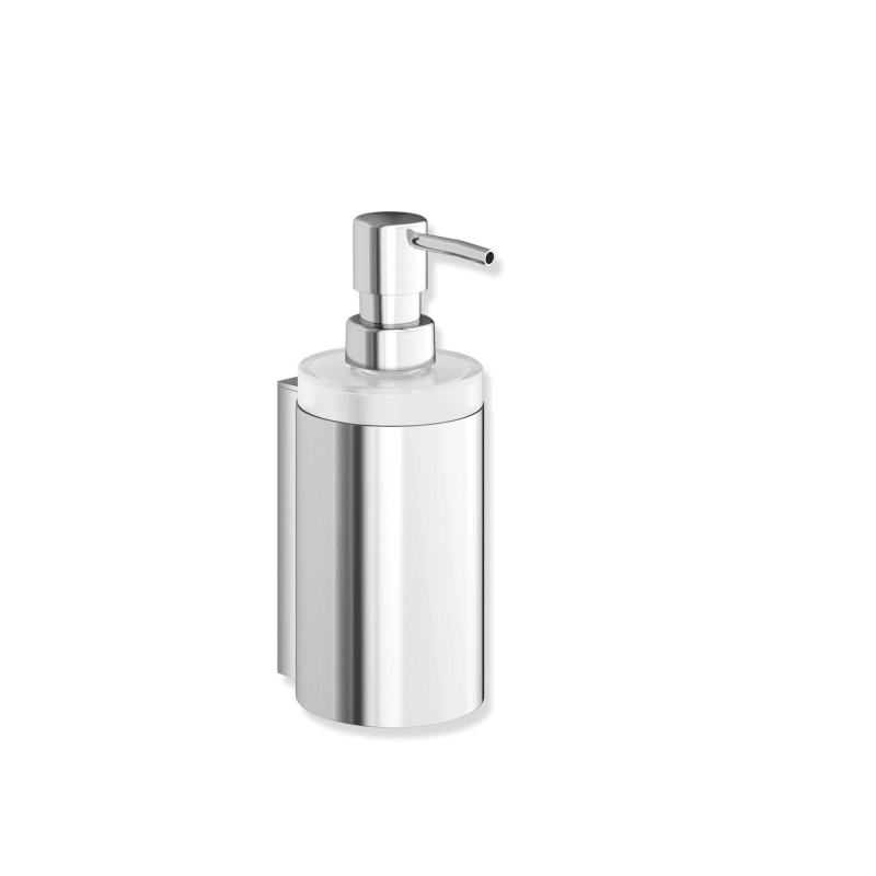 HEWI, System 900, Seifen- oder Desinfektionsmittelspender mit Halter, 200 ml, satiniertes Kristallglas/Edelstahl
