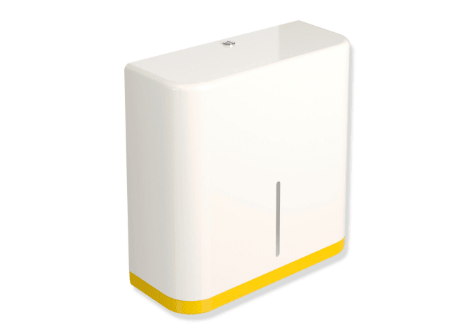 Korpus aus hochglänzendem Polyamid in der HEWI Farbe 99 (Reinweiß), Rahmenelement / Entnahmeöffnung aus hochglänzendem Polyamid, Breite 360 mm, Höhe 364 mm, Tiefe 147 mm, Schutz gegen Missbrauch durch Verriegelung, Erweiterung durch Karussel 900.21.E01 möglich.