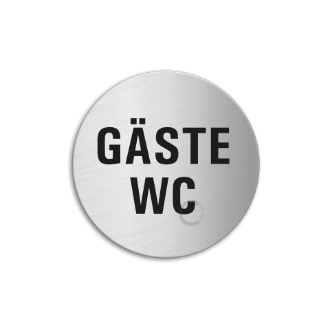 Hinweisschild aus Edelstahl "GÄSTE WC" • Rund, Ø 60 x 1 mm • Selbstklebend • Kanten entgratet