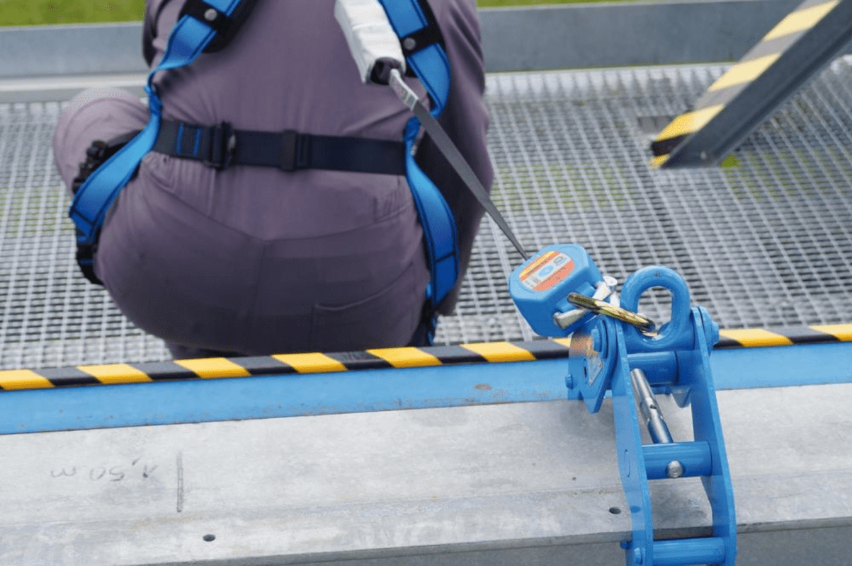 Höhensicherungsgerät blocfor™ 1,8A ESD • Geeignet für den horizontalen Einsatz auf einem Flachdach • Vertikale Bewegung mit 20°-Auslenkung • Automatische Auf- und Abwicklung • ESD-Bandfalldämpfer • G