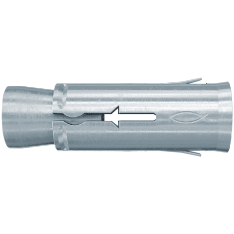 Der fischer Hohldeckenanker FHY ist ein Innengewindeanker aus galvanisch verzinktem Stahl. Der FHY wird in der Vorsteckmontage mit der Hand ins Bohrloch gesetzt und mit dem Hammer bündig zur Oberfläche des Baustoffes eingetrieben. Beim Aufbringen des Drehmoments wird der Konus in die Spreizhülse gezogen. Im Hohlraum spreizt diese auf und im Vollbaustoff verspannt sich diese gegen die Bohrlochwand. Der fischer Hohldeckenanker FHY ist ideal für die Befestigung von Rohrleitungen, Kabeltrassen, Lüftungsleitungen in Spannbeton-Hohlplattendecken im Innenbereich.
