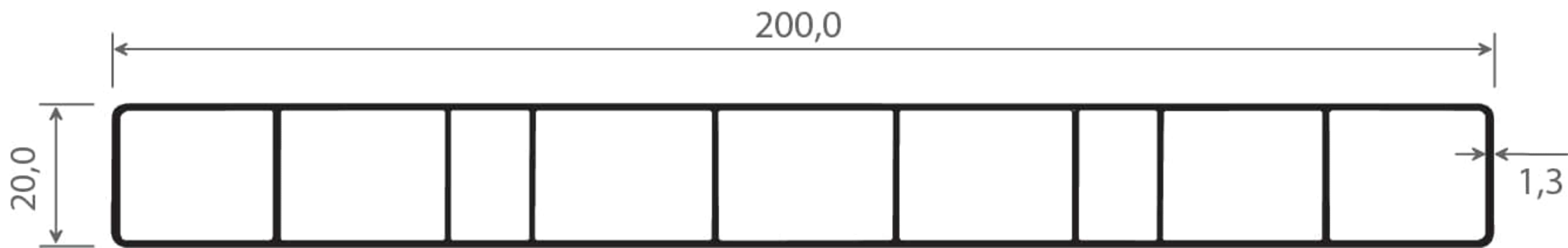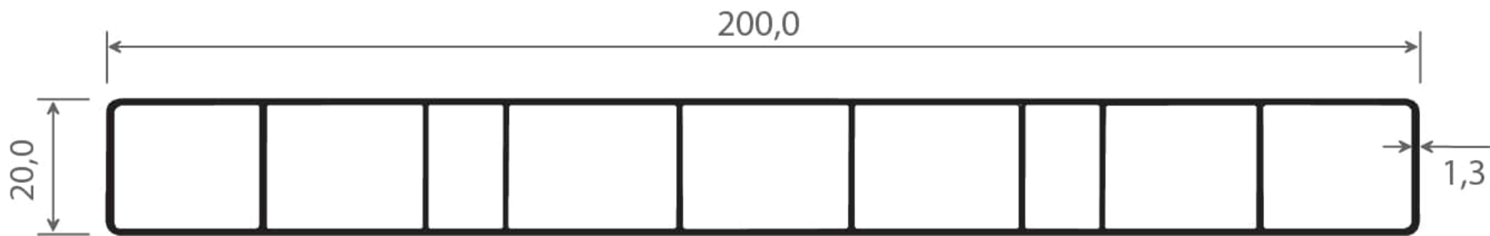 Hohlkammerprofil 200x20 mm Lg. 6,00 m foliert 436 5031 SEIDENGRAU [115]