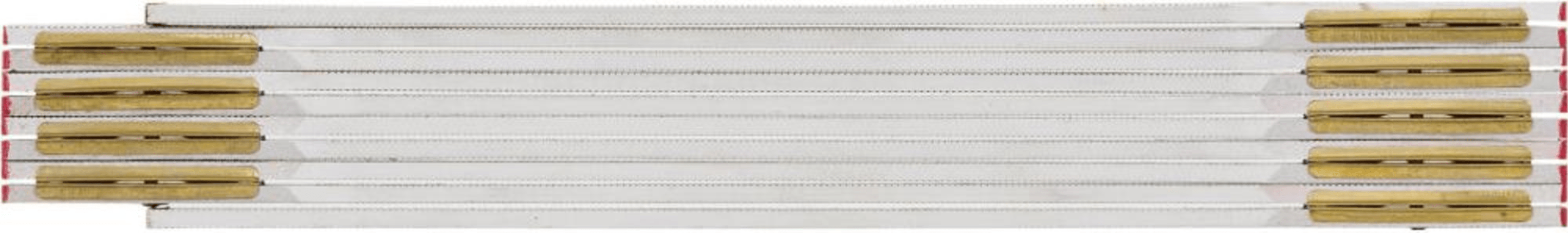 Holz-Gliedermaßstab• Buchenholz • 3 mm starke Glieder • Durchgenietete Gliederverbindung • Dauerhaft gefettete Gelenke • Schwarze mm-Teilung an der oberen und unteren Gliederkante • EG-Genauigkei