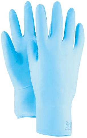 KCL Handschuh »Dermatril® 740, L 741«Material: Nitril, Länge: 270-280 mm, Stärke: 0,11 mm, silikonfreie Handschuhoberfläche, Rollrand, Fingerkuppen geraut, ungepudert. Eigenschaften und Vorteile: Einmalschutzhandschuh, sehr hohes Tastempfinden, hervorragender Tragekomfort, erhöhte Reißfestigkeit, verbesserte Griffigkeit durch Fingerspitzenrauung, gute Chemikalienbeständigkeit, anschmiegsame Passform.Besonderheiten: naturlatexfrei, beständig gegen eine Vielzahl von Zytostatika, virenbeständig nach ASTM F 1671:2007, Lebensmittelunbedenklichkeit nach EU 1935/2004.Anwendungsbereiche: Labor und Forschung, chemische Industrie, Lebensmittelindustrie, Elektronikindustrie, Computerindustrie, Reinigungs- und Wartungsarbeiten, Produktschutz.Schutz nach Kategorie 3.Farbe: blau.nur Rollrand ohne lange Stulpe.