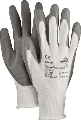 Handschuh »Camapur® Comfort 619«Material: Polyurethan, Polyamid.Eigenschaften: gute mechanische Belastbarkeit und gleichzeitig eine hohe Feinfühligkeit. Der Handschuh überzeugt durch seine elegante Passform. Die PU-Beschichtung gibt dem Produkt eine sehr gute Griffigkeit - auch bei fettigen und öligen Gegenständen und Tätigkeiten.Anwenungsbereiche: Montagetätigkeiten, Elektroindustrie, Feinmechanik, Automobil- und Zulieferindustrie, Produktschutz, Metall- und Kunststoffverarbeitung, Lager- und Kommissionierarbeiten.Länge: ca. 220-260 mm, Stärke: ca. 1,0 mm.Schutz nach Kategorie 2, EN 388 (3.1.3.1.), EN 420.Farbe: weiß/grau.