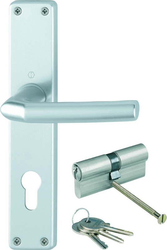 HOPPE-Aluminium-Langschild-Türgriff-Garnitur inkl. Profildoppelzylinder für Innentüren