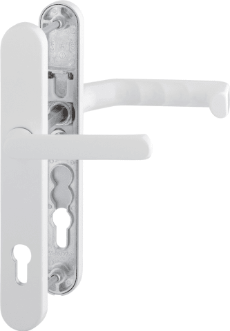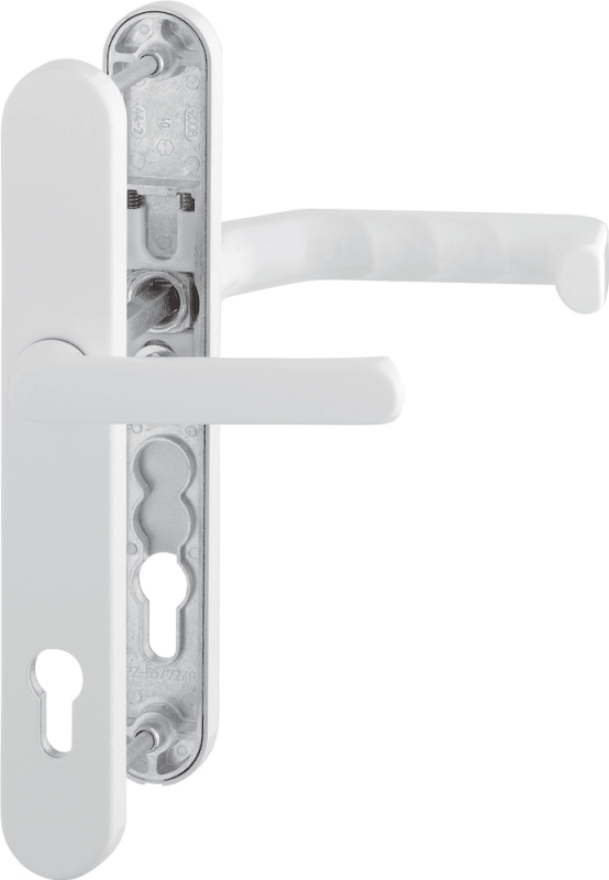 Lagerung: außen Kurzhalsgriff, innen gekröpfter Türgriff, fest/drehbar, Rückholfeder, wartungsfreie Gleitlager