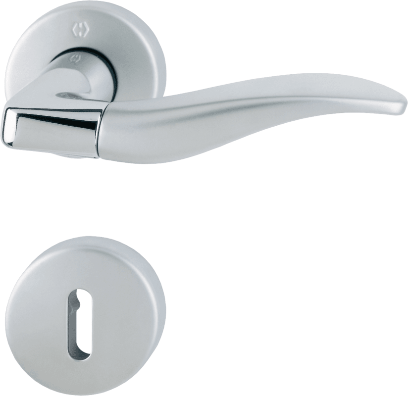 Entdecken Sie die elegante Hoppe Drückergarnitur M1640/19KV/19KVS aus Messing für einen stilvollen Akzent in Ihrem Zuhause.