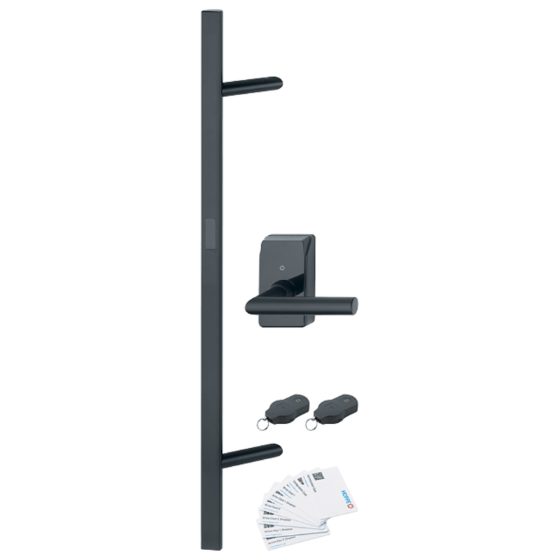 HOPPE-eTürbeschlag HandsFree – Edelstahl-Stoßgriff- Set zur berührungslosen Türentriegelung