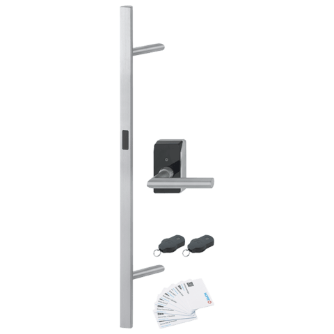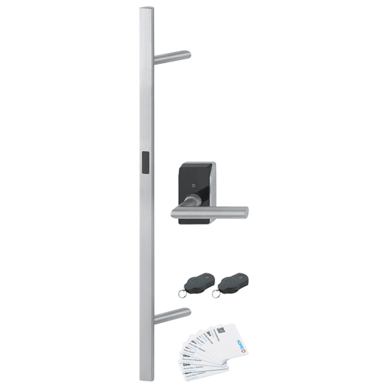 HOPPE-eTürbeschlag HandsFree – Edelstahl-Stoßgriff- Set zur berührungslosen Türentriegelung