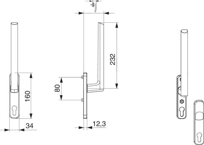 HS-Griff 12 Innengriff PZ Nocke innen 10 ohne Stift 10 champagne F2
