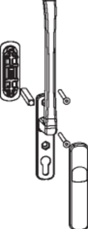 HS Griffgarnitur Standard Innen- und Muschelgriff kurz Einfrästiefe 13 mm mit Schrauben M6x70 Stift 10x42 Profilstärke 68 mm titan F7