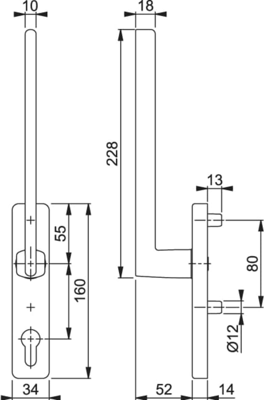 HOPPE-Messing-Hebe-Schiebe-Halbgarnitur für Fenstertüren (Außenseite)