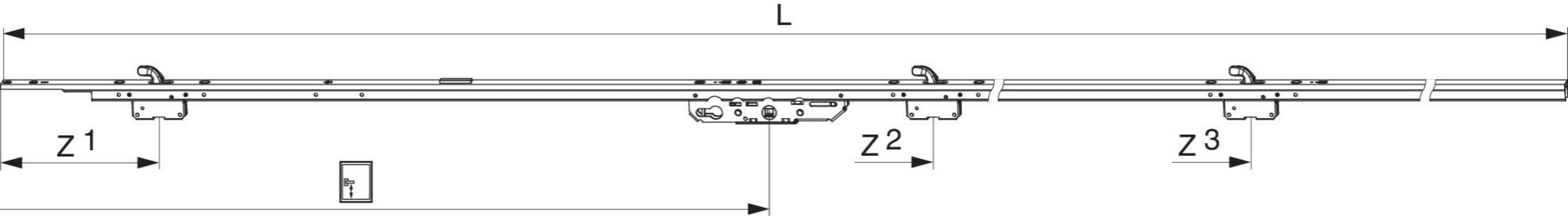 Maco HS Getriebe 400kg Rail mit 3 Haken Gr.7 FFH 2.670-3.860 DM 37,5 GM 1.000 PZ Stulp 22 silber eloxiert 224161