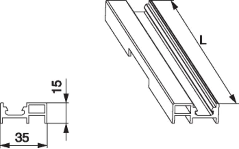 Aufsatzschiene HS-P in Alu für beweglichen Flügel mit Wasserschlitze "C"-Nut H=15 L=2.500 silber