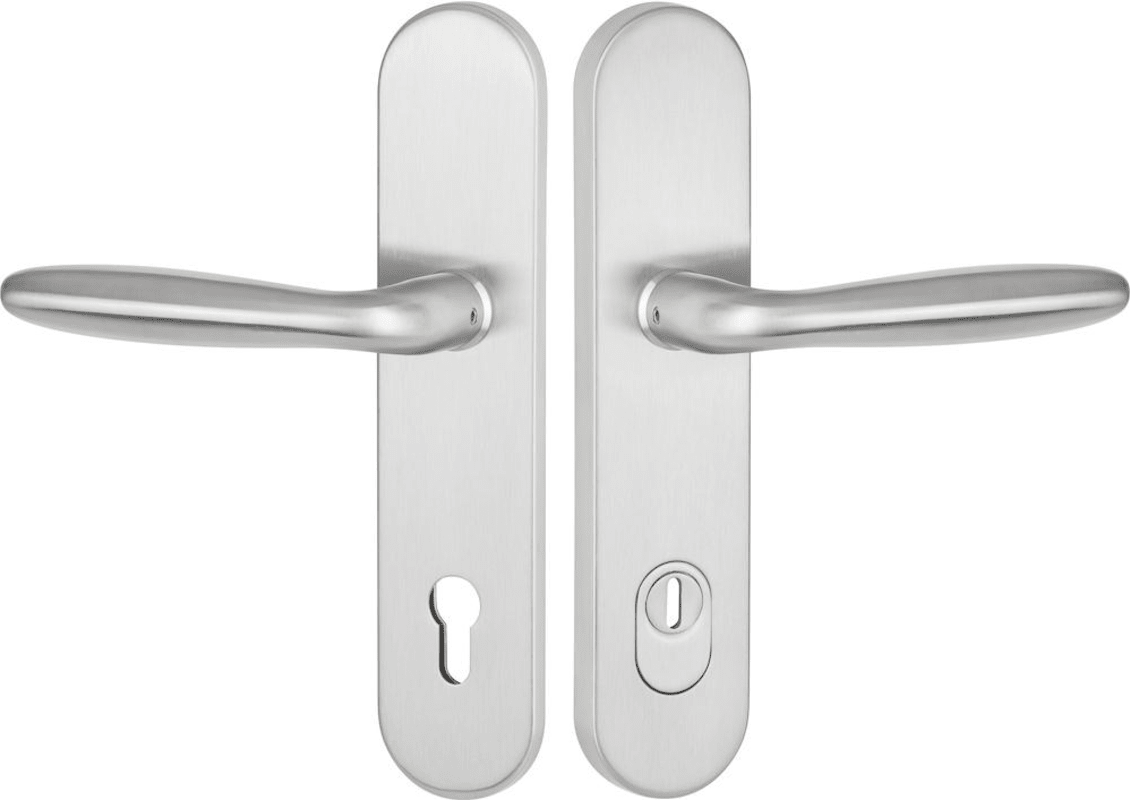 HT-EN2-Schutz-Drückergarnitur 1931 DREAM, mit Langschild 2089 KSH, Ausf.: PZ 88 mm, Türstärke 38 - 43 / 64 - 73 mm, mit Kernziehschutz für Zylinderüberstand 8 - 15 mm, Oberfl. 60 (Edelstahl matt)
