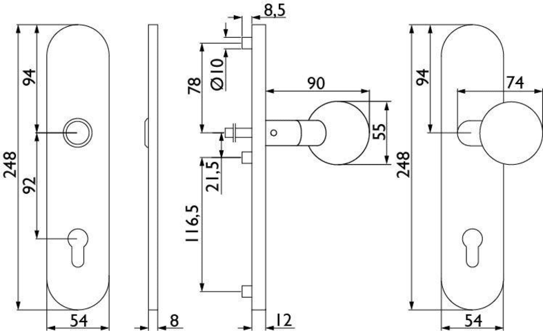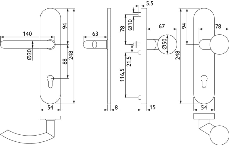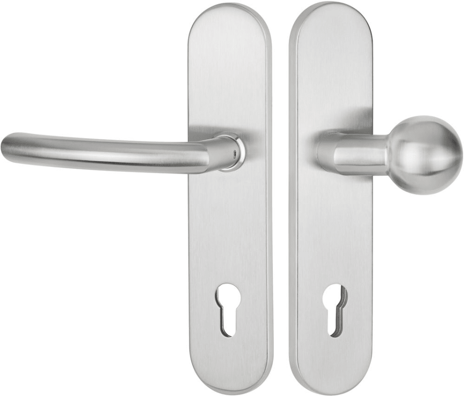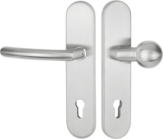 HT-EN2-Schutz-Wechselgarnitur 1804 BASIC 04, mit Langschild 2089 SH, Knopf 3126 gekröpft, Ausf.: PZW 88 mm, Türstärke 38 - 43 / 64 - 73 mm, mit Anbohrschutz, Außenschildstärke 12 mm, Oberfl. 60 (Edels