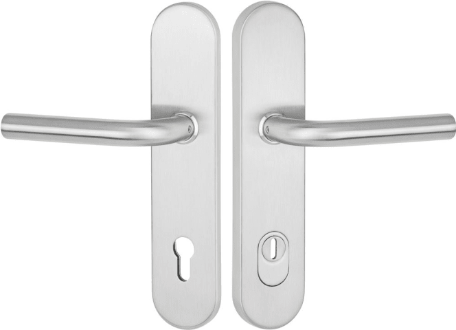HT-EN3-Schutz-Drückergarnitur 1803 BASIC 03, mit Langschild 2089 KSH, Ausf.: PZ 92 mm, Türstärke 64 - 83 mm, mit Kernziehschutz für Zylinderüberstand 8 - 15 mm, Oberfl. 60 (Edelstahl matt)