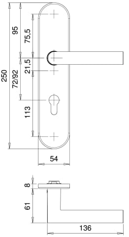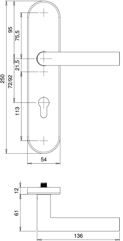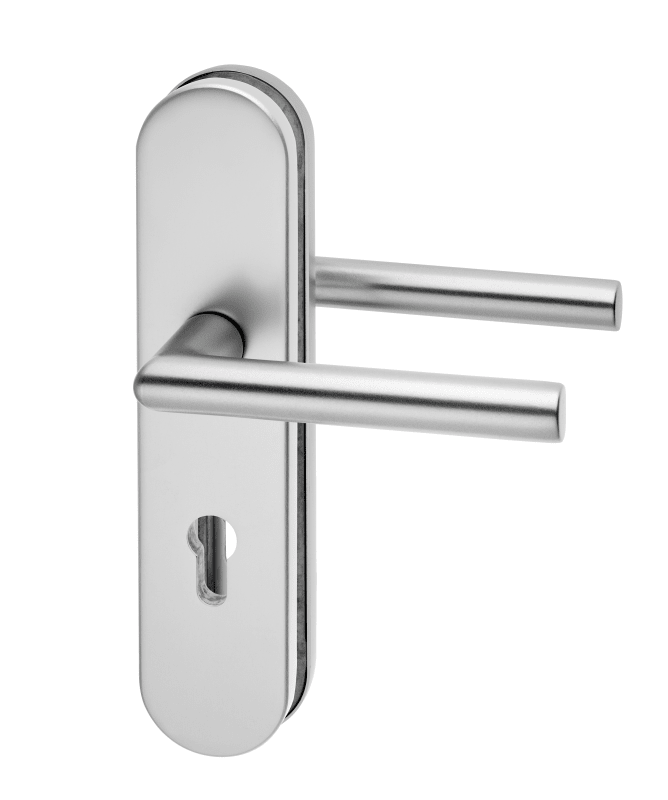 Dieckmann EST-Schutz-Drücker-Garnitur, ES-1, Serie Logo, ovales Langschild 12mm, 92 PZ,, 10mm VKT, TS=65-75mm, 108/108, 8743H F00