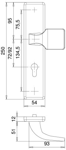 Dieckmann Alu-Schutz-Wechsel-Garnitur, ES-0, Serie Lana, kantiges Langschild 12mm, 92 PZ,, 10mm VKT, TS=65-75mm,137/K1, 8756H/K1 F01