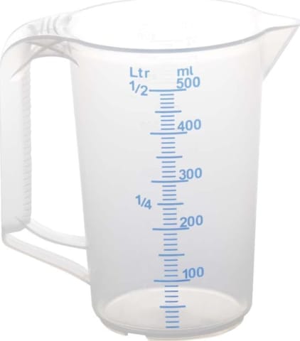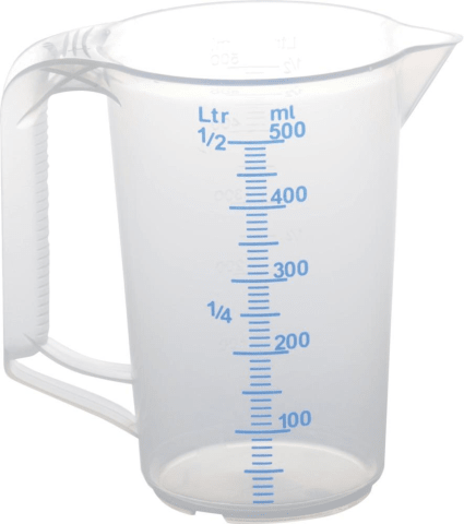 Messkanne • Polypropylen • Ausgusstrichter und Maßeinteilung • Lebensmittelbeständig • Sehr gute chemische Beständigkeit gegen Alkohol, Fette, Harze, Laugen, Öle und Säuren • Temperaturbeständig von