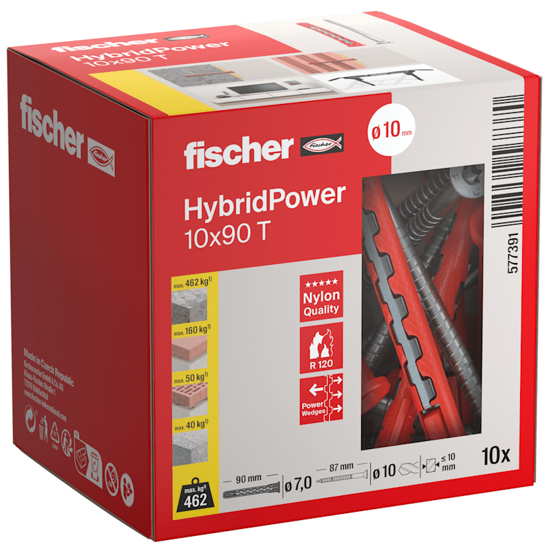 HybridPower. Kunststoff trifft Stahl. Stark, sicher, einfach.Der fischer HybridPower kombiniert die Vorteile eines klassischen Kunststoffdübels mit der Sicherheit eines Stahlankers. Durch die Kombinat