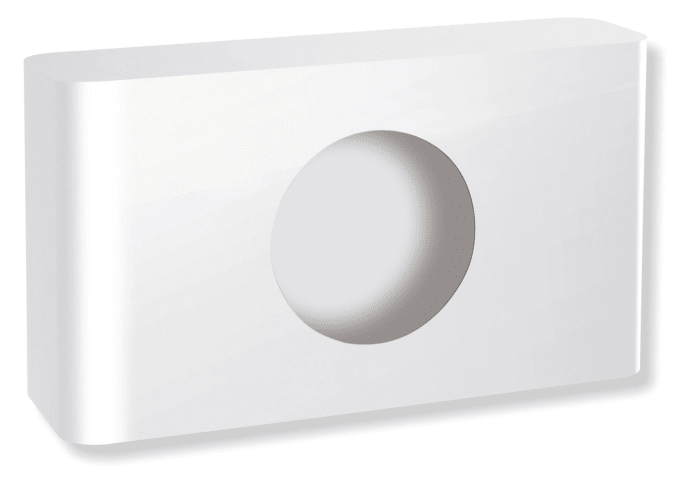 HEWI Hygienebeutelspendermax. Packungsgröße L 130 x B 90 x H 20 mm, kubischer Grundkörper mit eingerücktem Wandsockel, mit Reservoir für eine Ersatzpackung Hygienebeutel, 150 mm breit, 92 mm hoch und