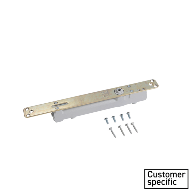Integrierter Gleitschienentürschließer mit Endschlag und mechanischer Öffnungsdämpfung für nicht feuerzertifizierte Türen. DIN rechts.