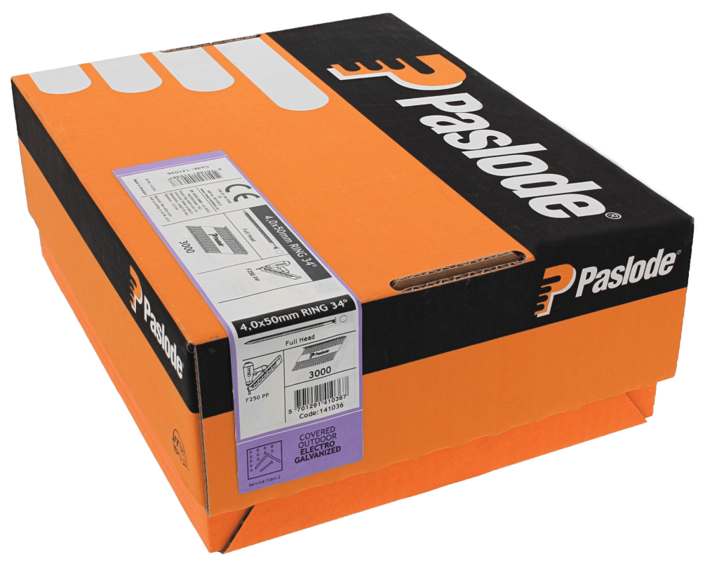Meesenburg Artikelbezeichnung: ITW PASLODE ANKERNÄGEL PL 4,0X50 RS EG12 GEHÄ. 34° PAPIERM. F250S 141036 3000ER P
