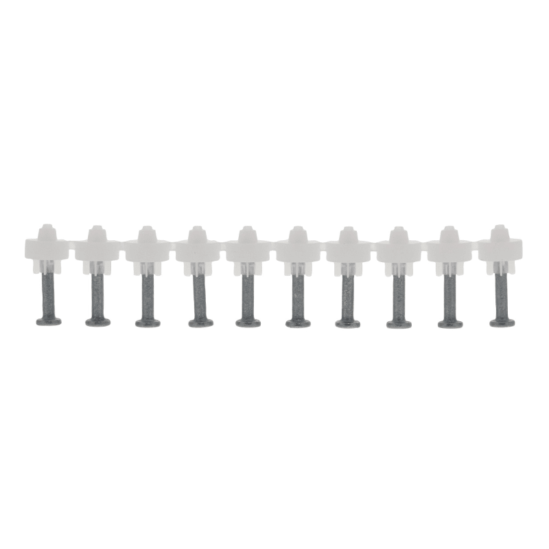 Spezialnägel mit Kunststoffrondelle inkl. Gas für Hartbeton und Spannbeton Zeitersparnis bei der Befestigung von empfindlichem Zubehörmaterial • Kunststoffrondelle zur Befestigung vorgebohrter Kunst