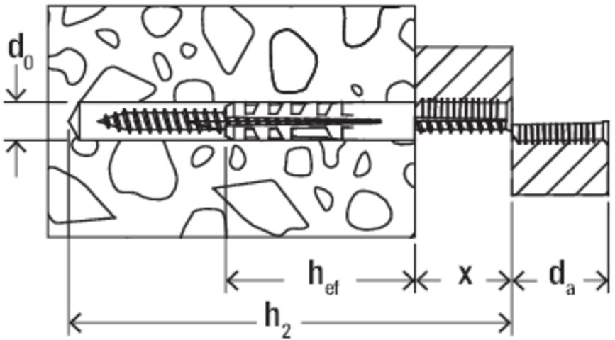 Min. Bohrlochtiefe bei Durchsteckmontage: 115 [mm]