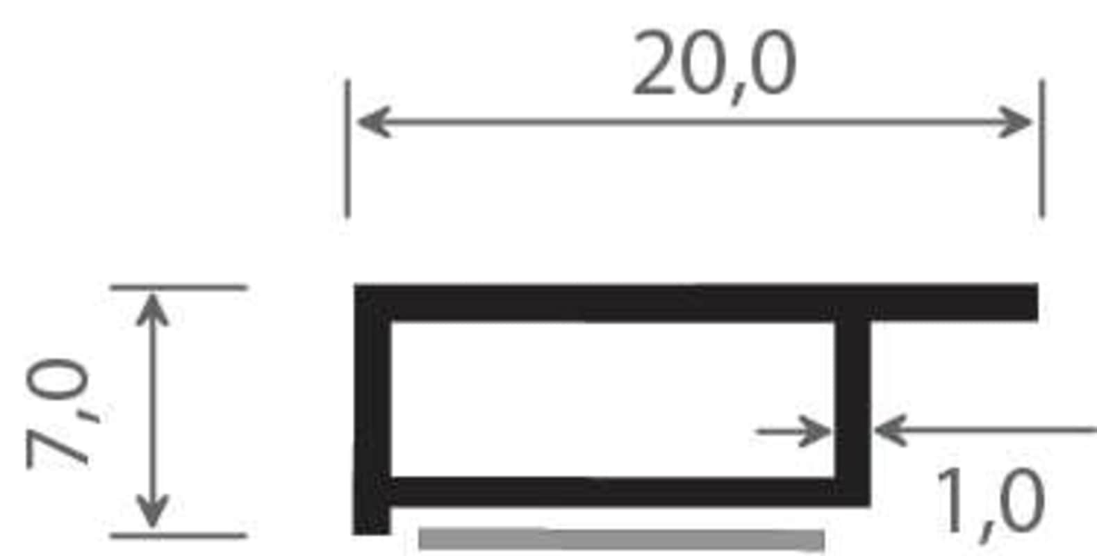 Kammerprofil 20x7 mm SK Lg. 6,00 m foliert, mit Nase 02.12.76.000013 SILBER D GLATT [156]
