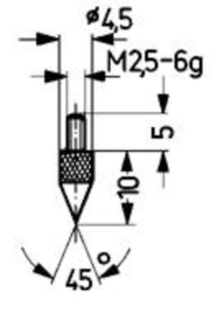 Messeinsatz aus StahlMesseinsatz für Messuhren und Feinzeiger mit Gewindeanschluss M2,5. Alle Messuhren und Feinzeiger werden standardmäßig mit Messeinsatz Nr. 1 aus gehärtetem Stahl geliefert.Messeinsätze mit Rubin- oder Saphirkugeln auf Anfrage.